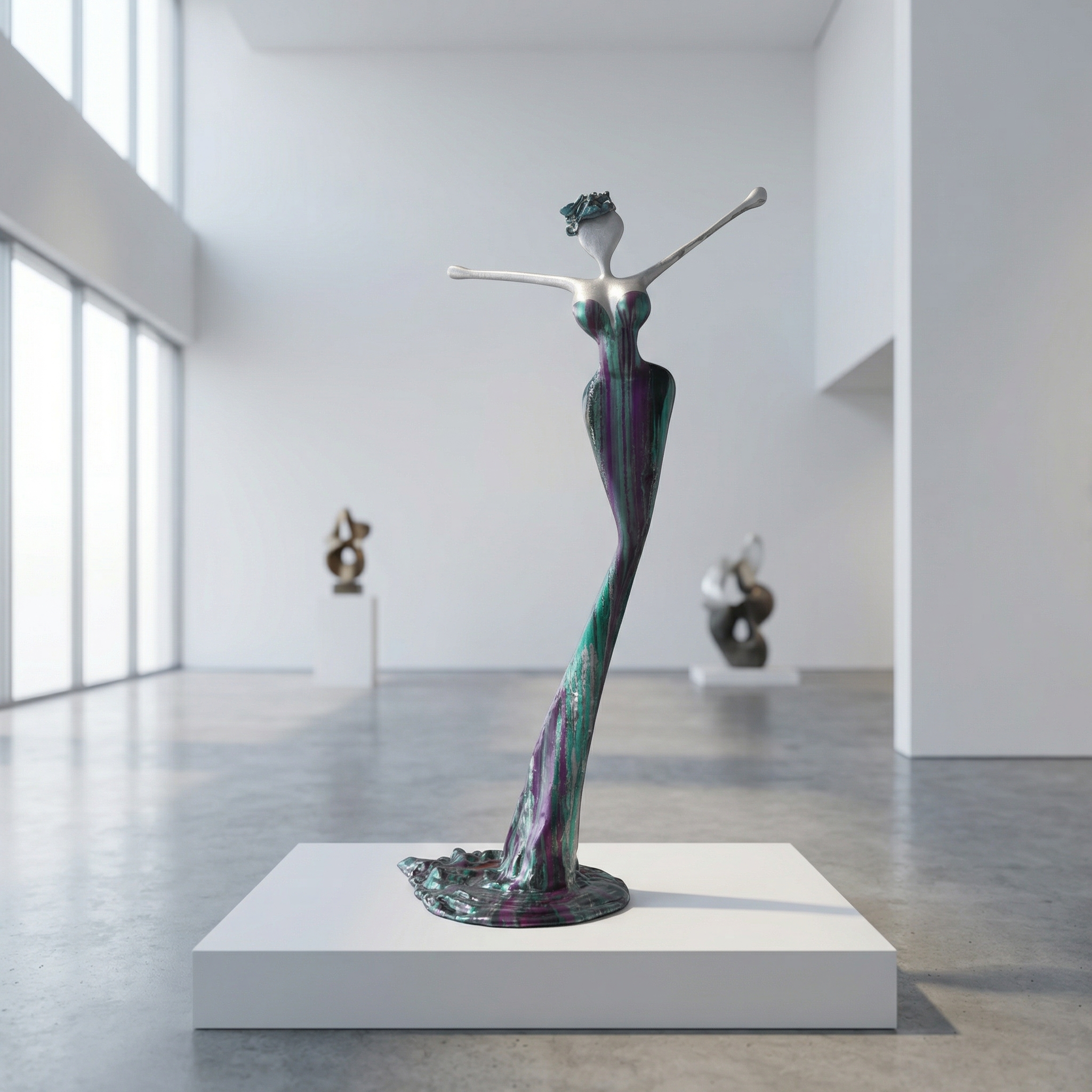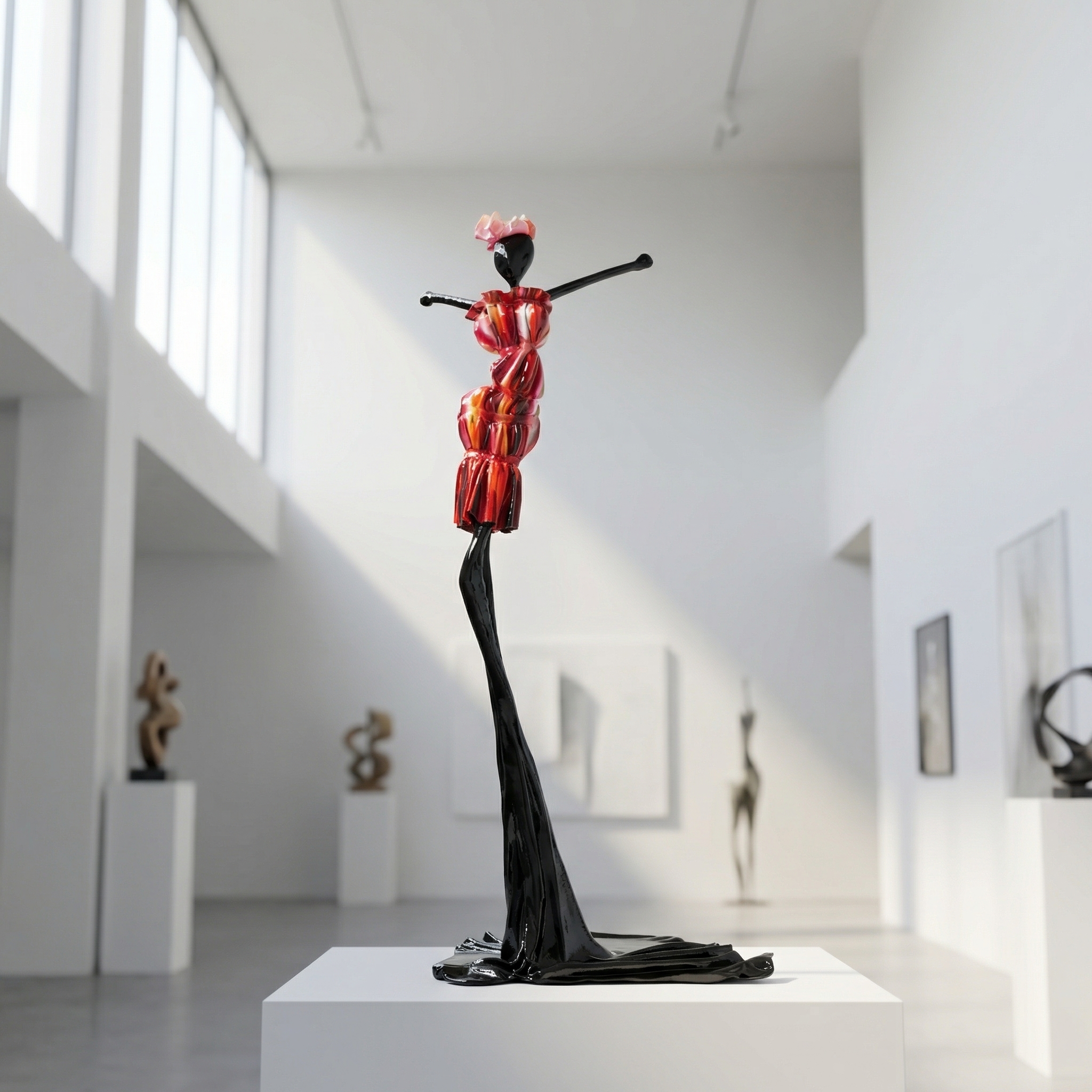With their NONOS sculptures, artist sisters Mercedes and Franziska Welte create art in their own language. The name NONOS remains a secret that surrounds them to this day. In the creative process, objects are transformed into figures that become part of the world as dancers, athletes or observers. The interplay of movement and colour makes the figures appear alive and emotional. Each sculpture bears its own signature.