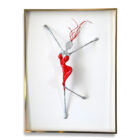 This framed wall sculpture combines feminine energy, dance-like movement, and powerful lightness. Crafted from metal, paper, and fine pigments.