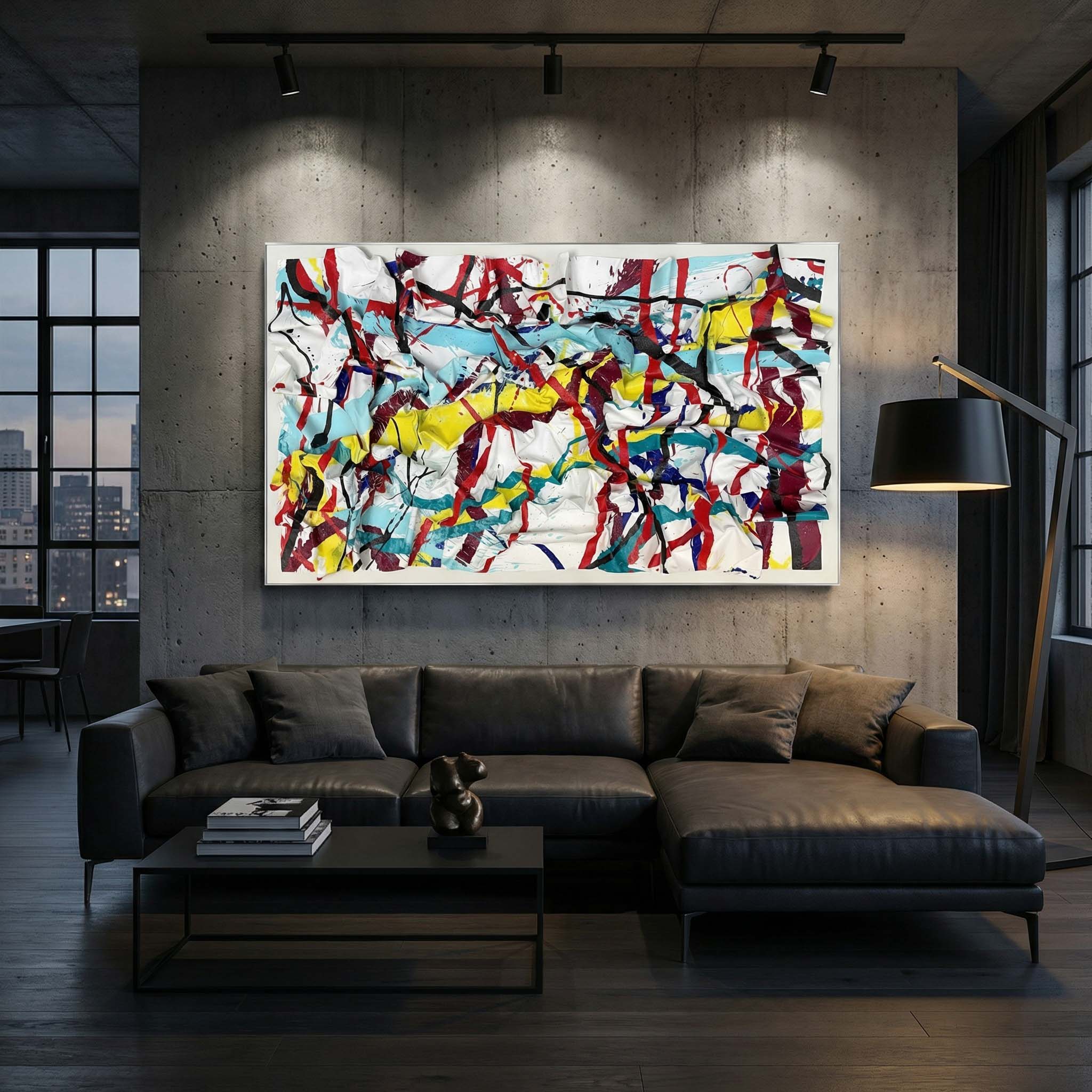 Leinwand, Carbon und Fiberglas formen skulpturale Reliefs, die aktiv mit Licht und Architektur interagieren. Reine, lichtechte Pigmente intensivieren Tiefenwirkung und Farbschwingung und sichern dauerhafte Materialqualität.
