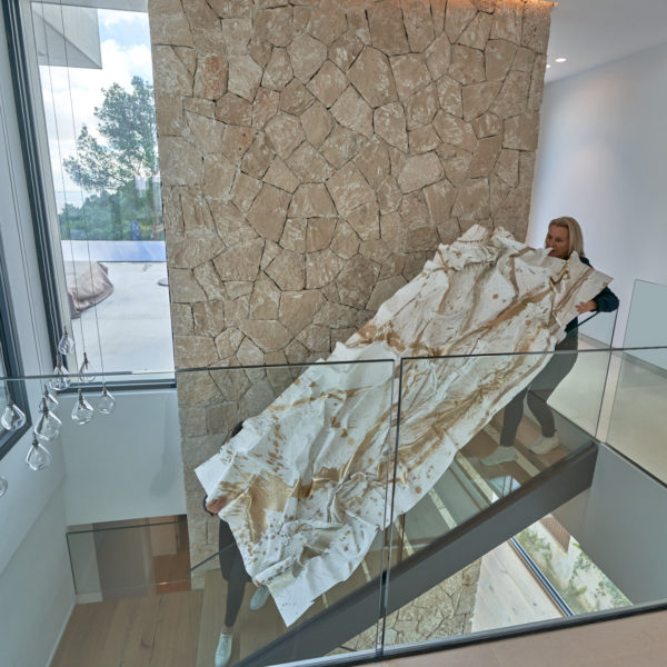 Die private Villa in hellen Naturfarben bot einen sehr ansprechenden Rahmen für die Kunstwerke von Franziska und Mercedes Welte. Neben bewegten Wandskulpturen aus Leinwand wurden Fiberglas-Objekte im Bereich des Wirlpools installiert.