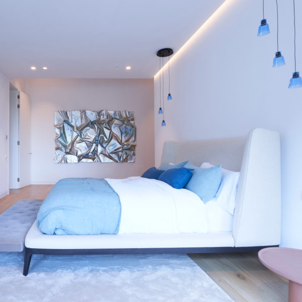 Alle Werke sind handgefertigt, bemalt und patiniert mit Pigmenten, um die Leuchtkraft der Farben zu verstärken. Eine freistehende NONOS Bronze Skulptur im Wohnbereich war ebenso Teil des Gestaltungskonzeptes wie ein Carbon Couture mit 160 cm Höhe im Esszimmer.