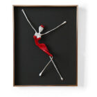 Diese gerahmte Wandskulptur vereint feminine Energie, tänzerische Bewegung und kraftvolle Leichtigkeit. Gefertigt aus Metall, Papier und feinen Pigmenten.